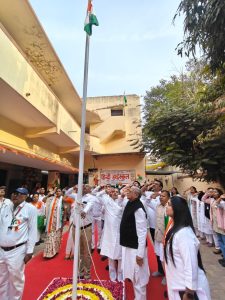 विधायक कौशिक जैन और मैनेजिंग ट्रस्टी गोपीराम गुप्ता ने ध्वजारोहण किया कार्यक्रम के दौरान संस्था के मुखपत्र संस्कार सरिता के “नव वर्ष एवं हिन्दी दिवस