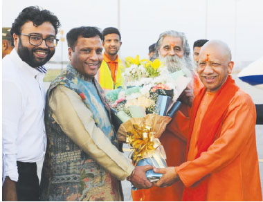 सूरत । उत्तर प्रदेश के मुख्यमंत्री श्री योगी आदित्यनाथ आज अपनी सूरत यात्रा के दौरान एक सामाजिक कार्यक्रम में शामिल हुए। सूरत हवाई अड्डे पर उनके आगमन पर शहर के गणमान्य नागरिकों और प्रशासनिक अधिकारियों द्वारा उनका गर्मजोशी से स्वागत किया गया।मुख्यमंत्री योगी आदित्यनाथ के स्वागत के लिए हवाई अड्डे पर सूरत के सांसद मुकेशभाई दलाल, विधायक सर्वश्री मनुभाई पटेल और संगीता पाटिल उपस्थित रहे। इसके अलावा, प्रशासनिक स्तर पर जिला कलेक्टर डॉ. सौरभ पारधी, महापौर दक्षेशभाई मावाणी और पुलिस कमिश्नर अनुपम सिंह गहलोत सहित अन्य महानुभावों ने उनकी अगवानी की और पुष्पगुच्छ भेंट कर उनका अभिवादन किया।